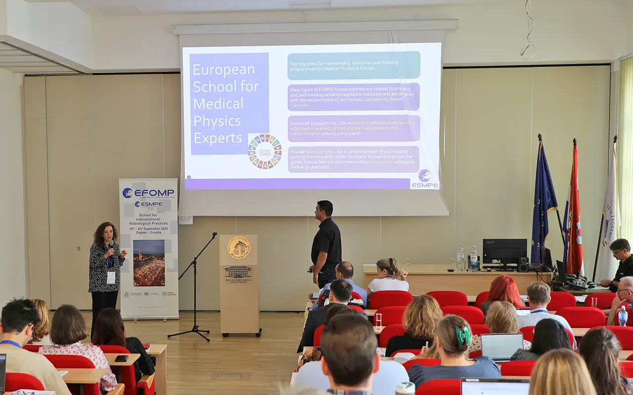 Prva hrvatska edicija Europske škole za stručnjake medicinske fizike – Škola za interventne radiološke prakse (ESMPE) uspješno je održana u Školi narodnog zdravlja Andrija Štampar od 18. do 20. rujna 2025. godine, u suorganizaciji Hrvatskog društva medicinskih fizičara (HDMF) i Medicinskog fakulteta Sveučilišta u Zagrebu.